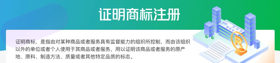 证明商标是指由对某种商品或者服务具有监督能力的组织所控制,而由该组织以外的单位或者个人使用于其商品或者服务,用以证明该商品或者服务的原产地、原料、制造方法、质量或者其他特定品质的标志;如:绿色食品标志,真皮标志,纯羊毛标志,电工标志等。证明商标应由某个具有监督能力的组织注册,由其以外的其他人使用,注册人不能使用。它是用以证明商品或服务本身出自某原产地,或具有某种特定品质的标志。只要当事人提供的商品或服务符合这一特定的品质并与注册人履行规定的手续,就可以使用该证明商标,注册人不得拒绝。