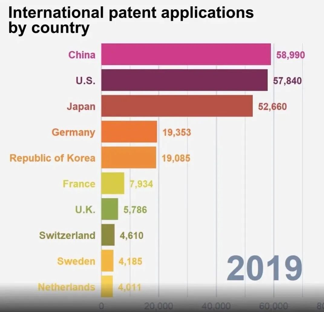 世界知识产权组织7日表示,2019年中国超过美国成为该组织《专利合作条约》(PCT)框架下国际专利申请量最多的国家。
