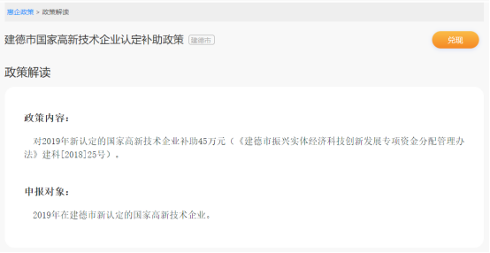 建德市国家高新技术企业补助政策