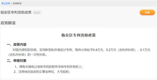 临安区专利资助政策