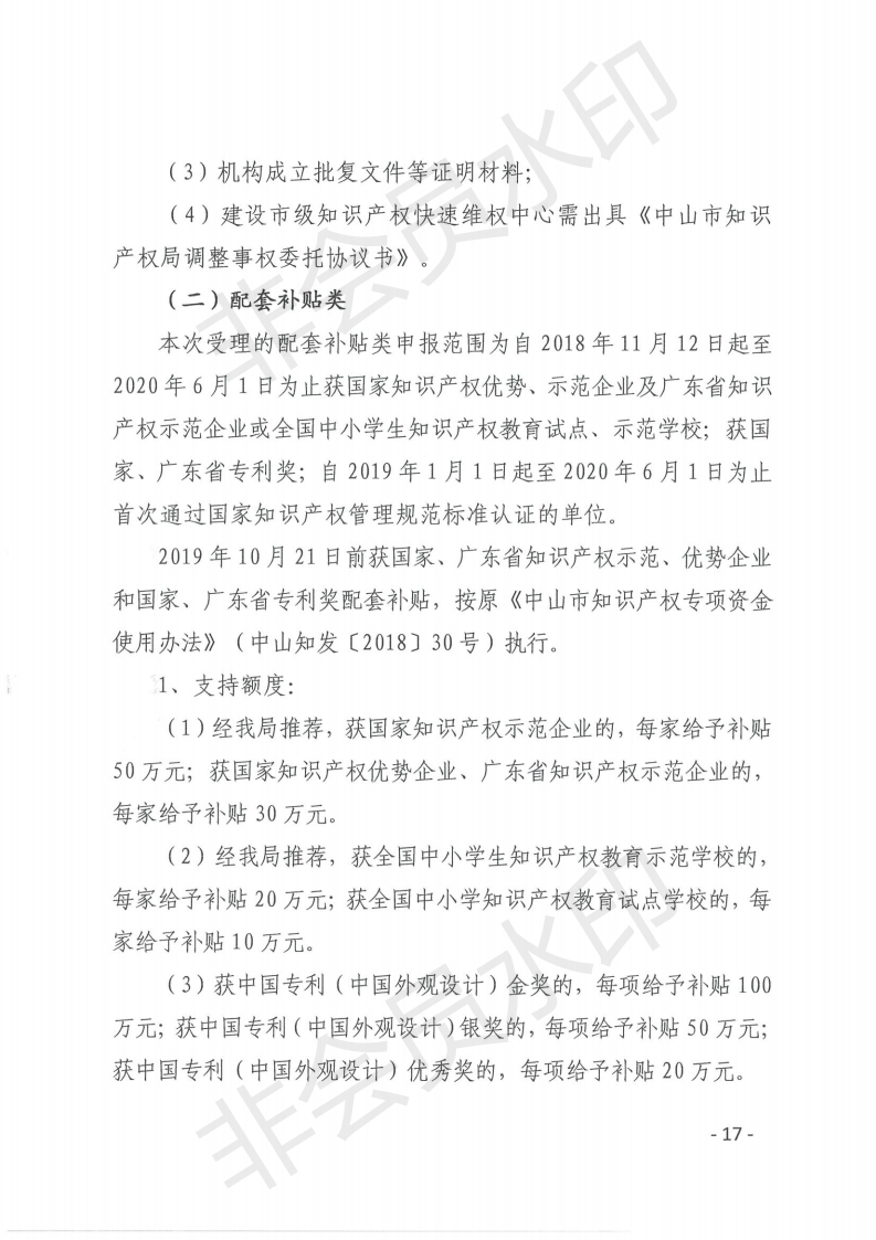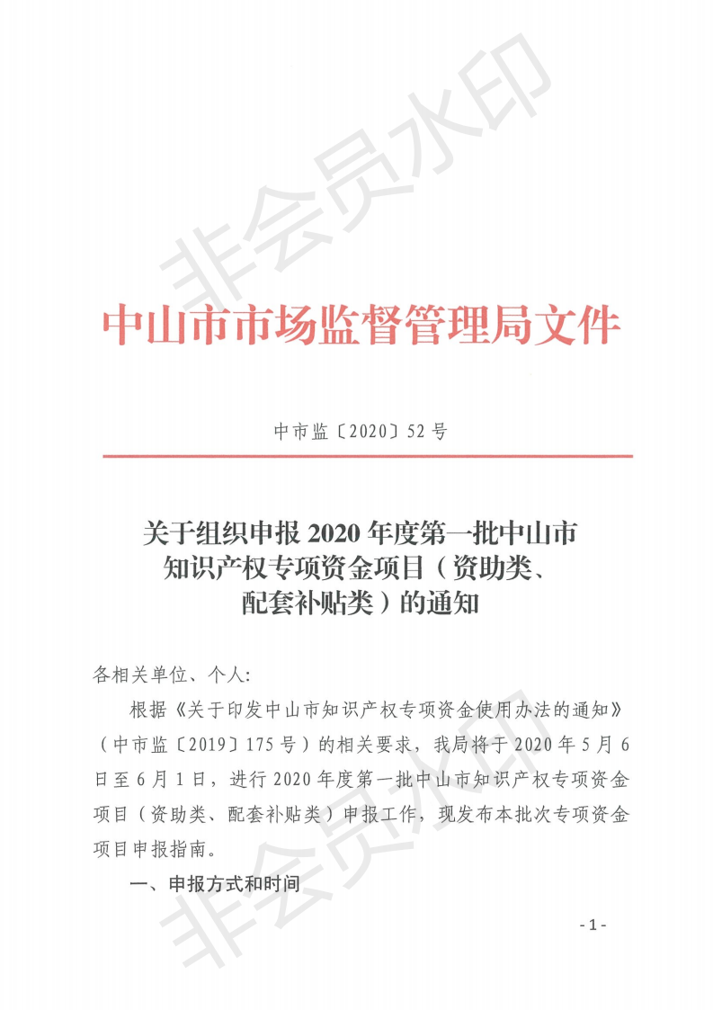 关于申报2020年中山市专利资助、贯标补贴及注册商标资助的通知