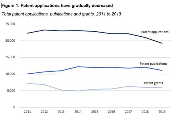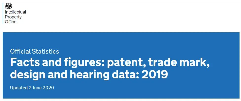 2020年5月27日,英国知识产权局(UK-IPO)发布了2019年度知识产权统计报告。报告的统计数据来自2019年专利、商标、外观设计和听证会的年度管理数据,主要结论如下。