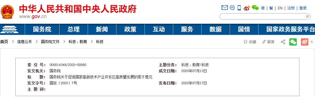 关于促进国家高新技术产业开发区高质量发展的若干意见