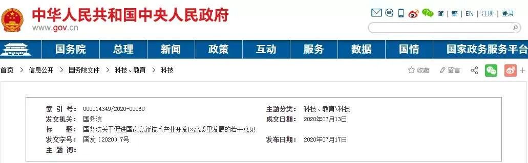 近日,国务院发布关于促进国家高新技术产业开发区高质量发展的若干意见提到: